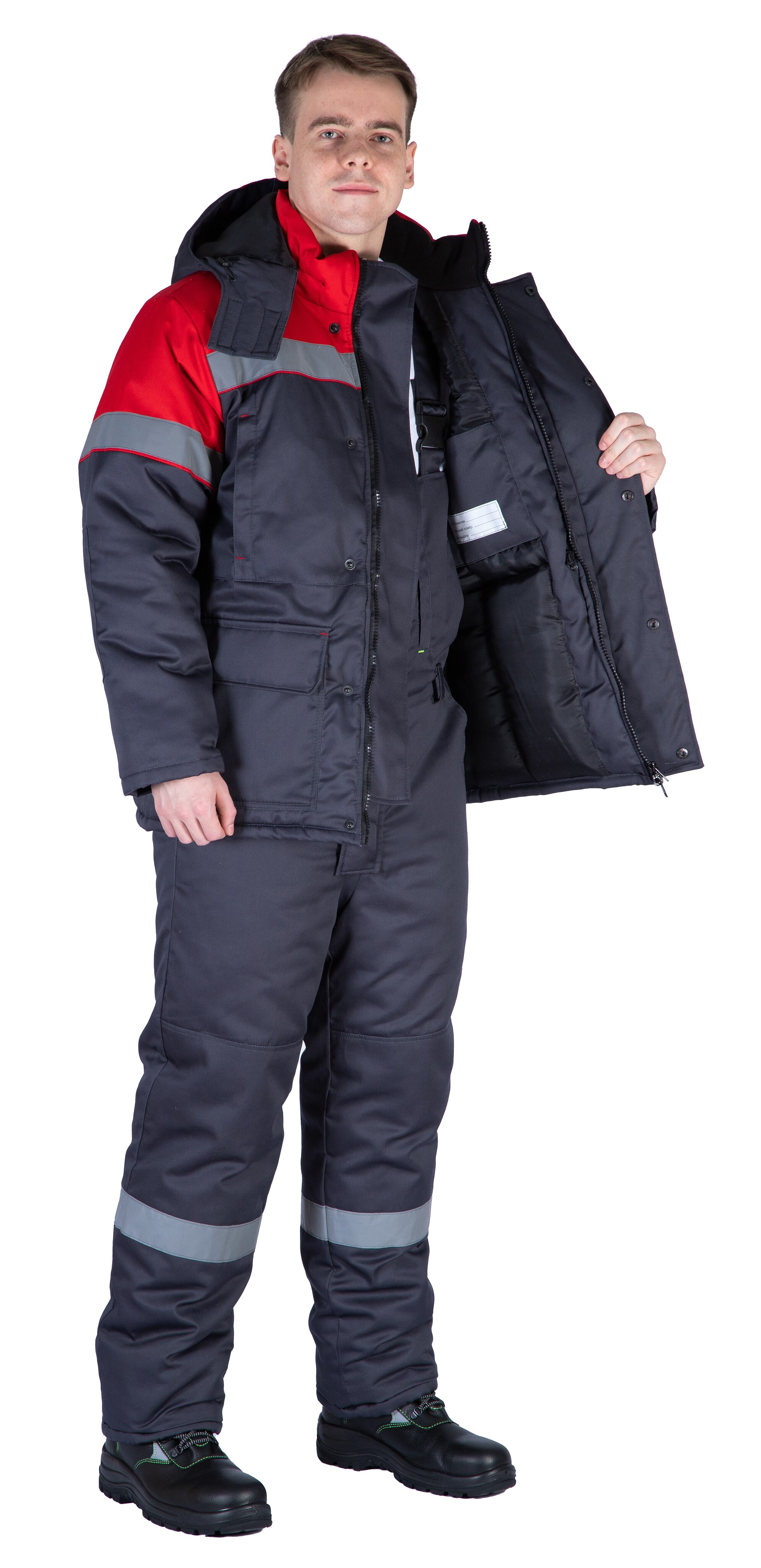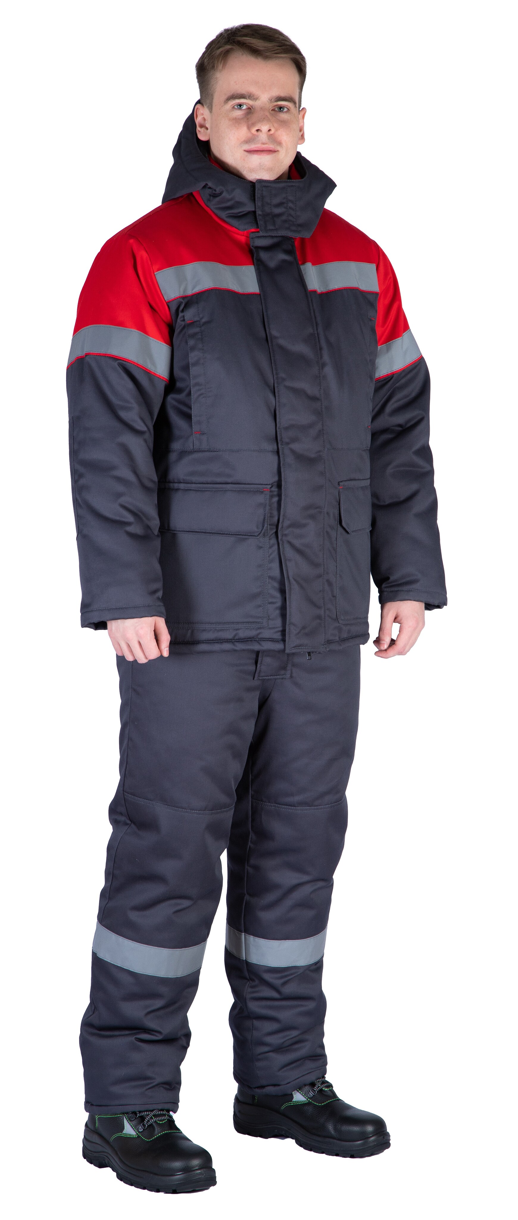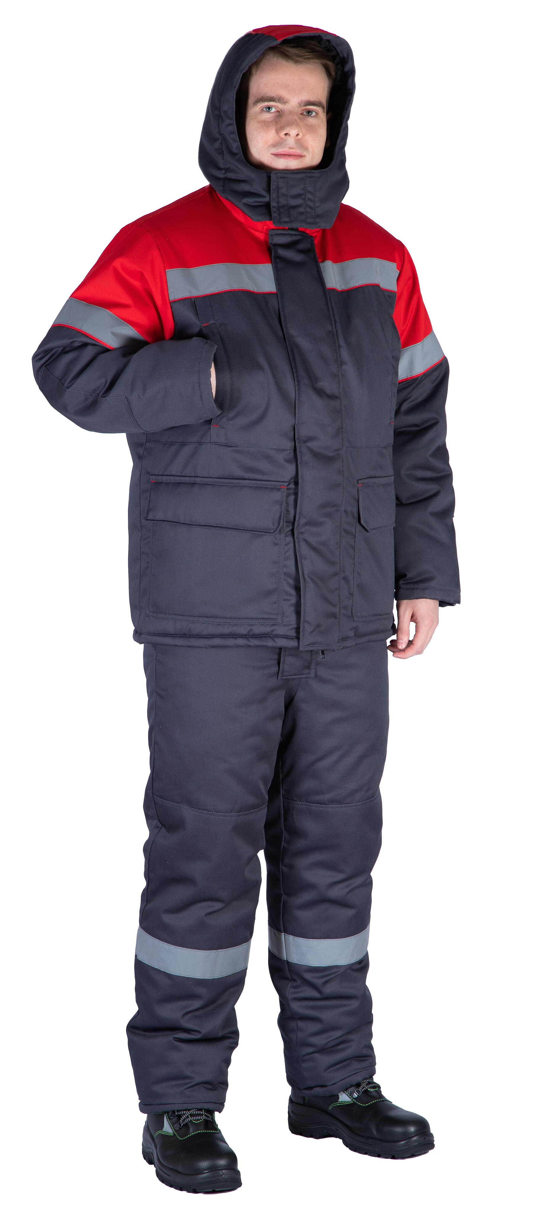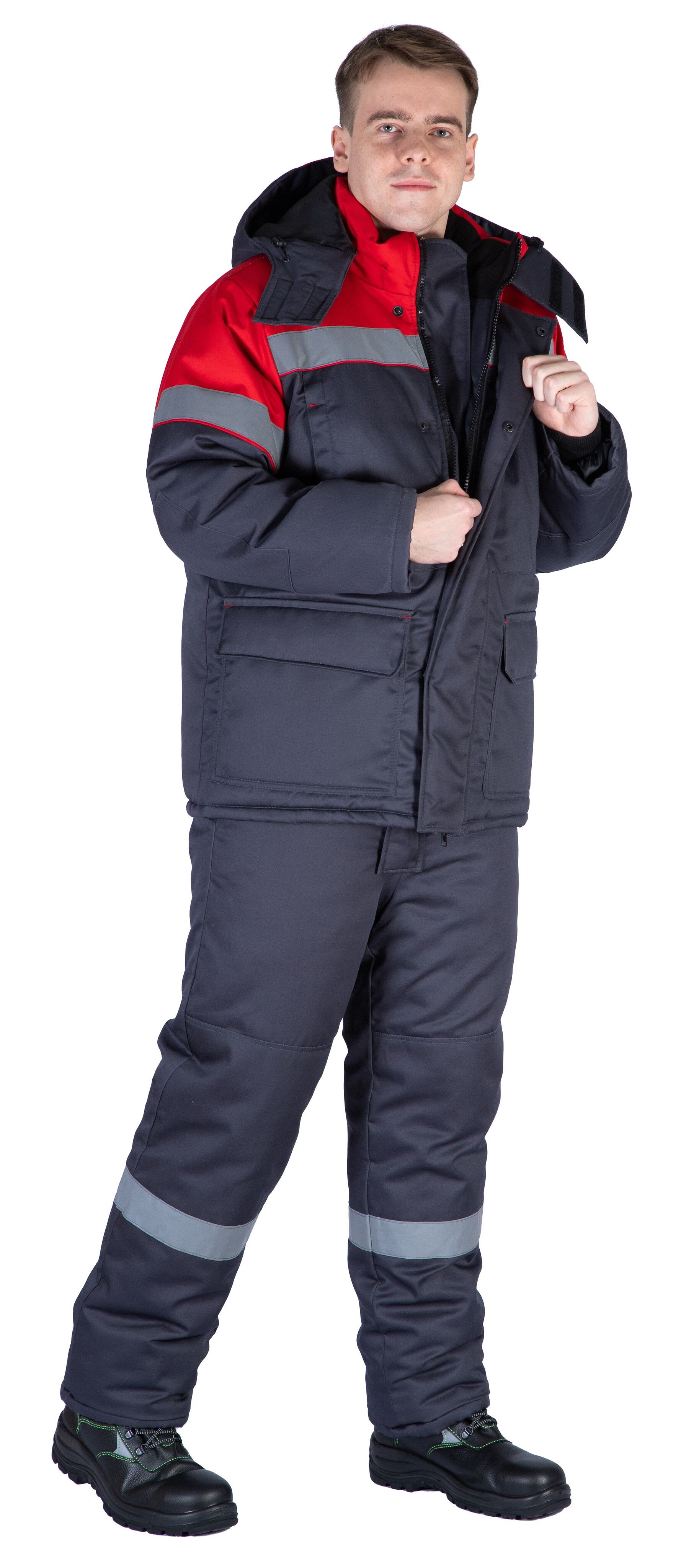 Костюм зимний "Байкит" с полукомбинезоном, т.серый/красный