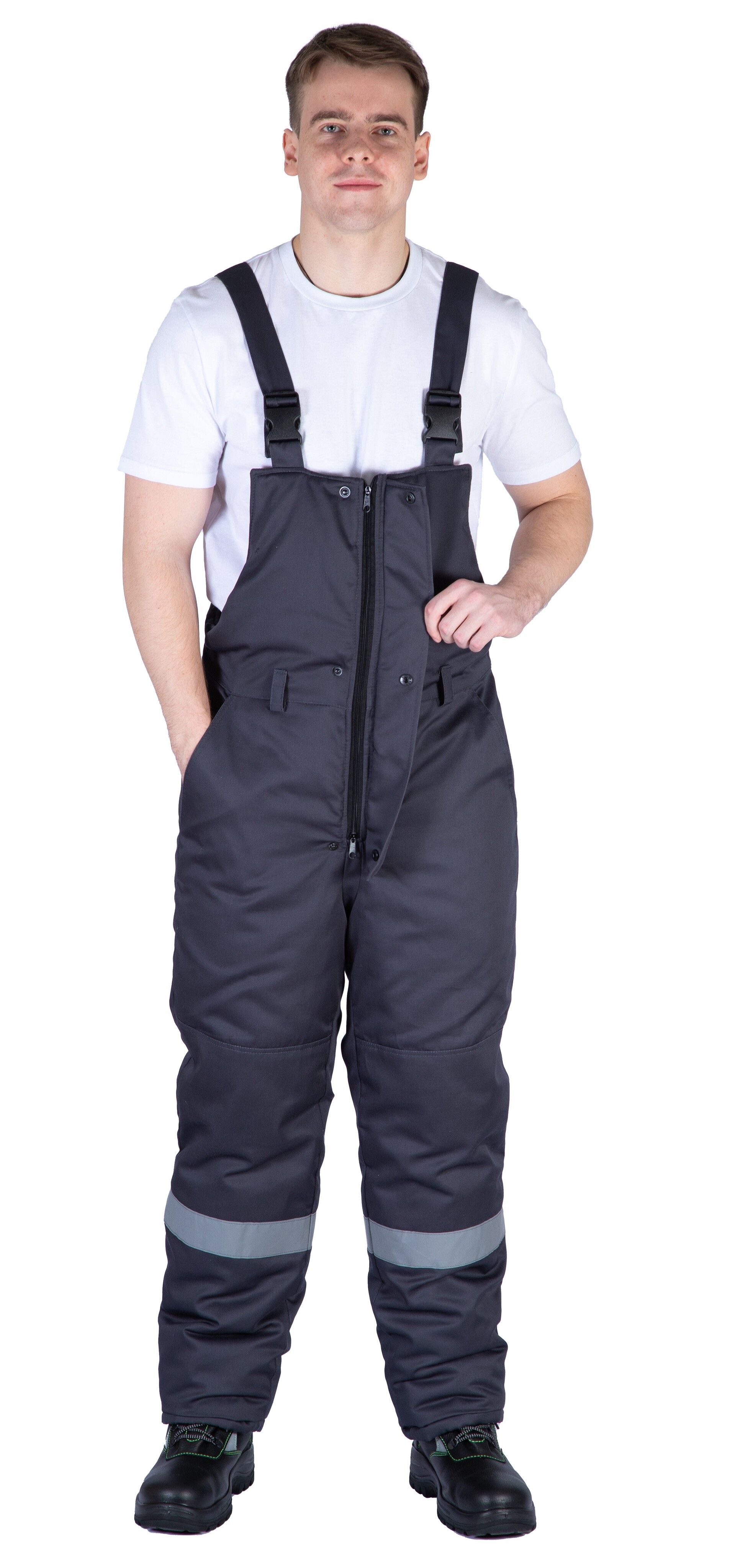 • высокий подворот низа брюк, позволяющий избегать разрывы подкладочной ткани и появления утеплителя наружу