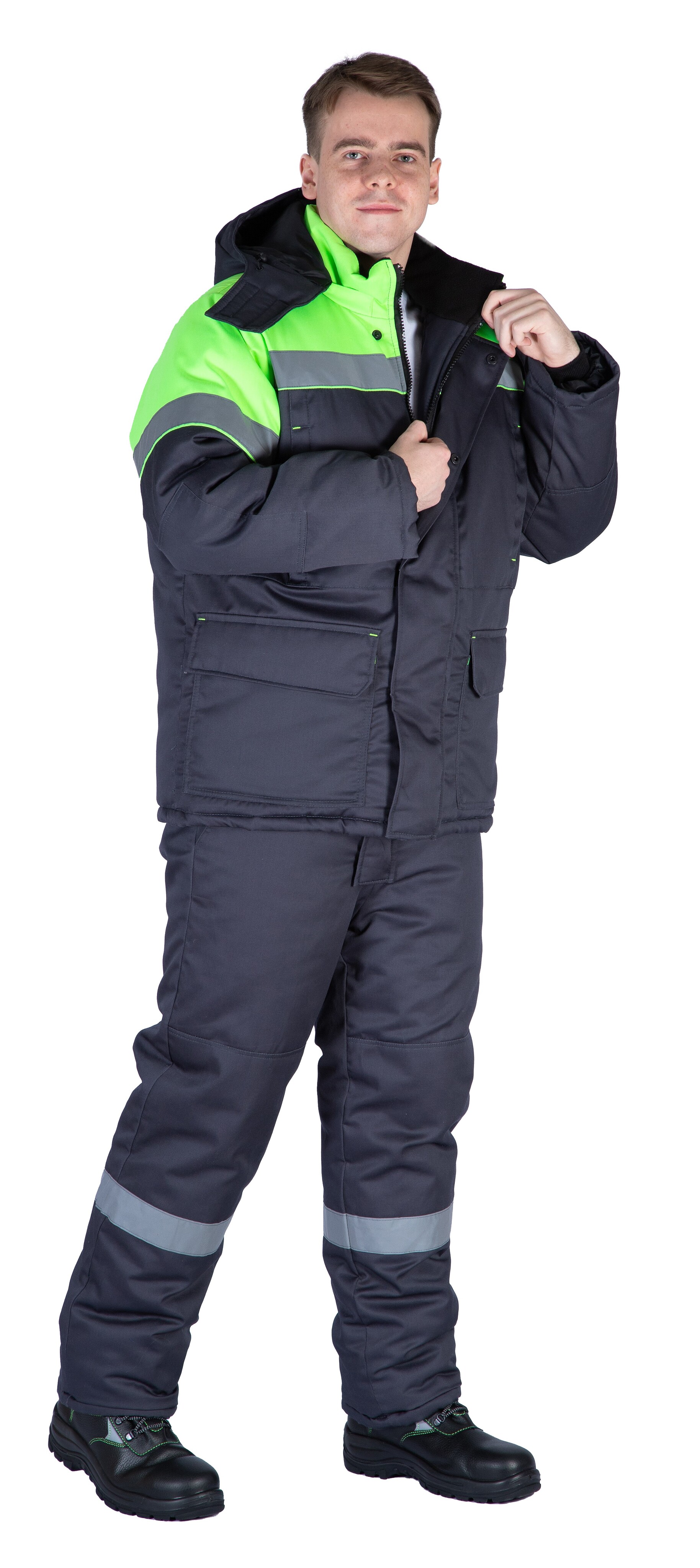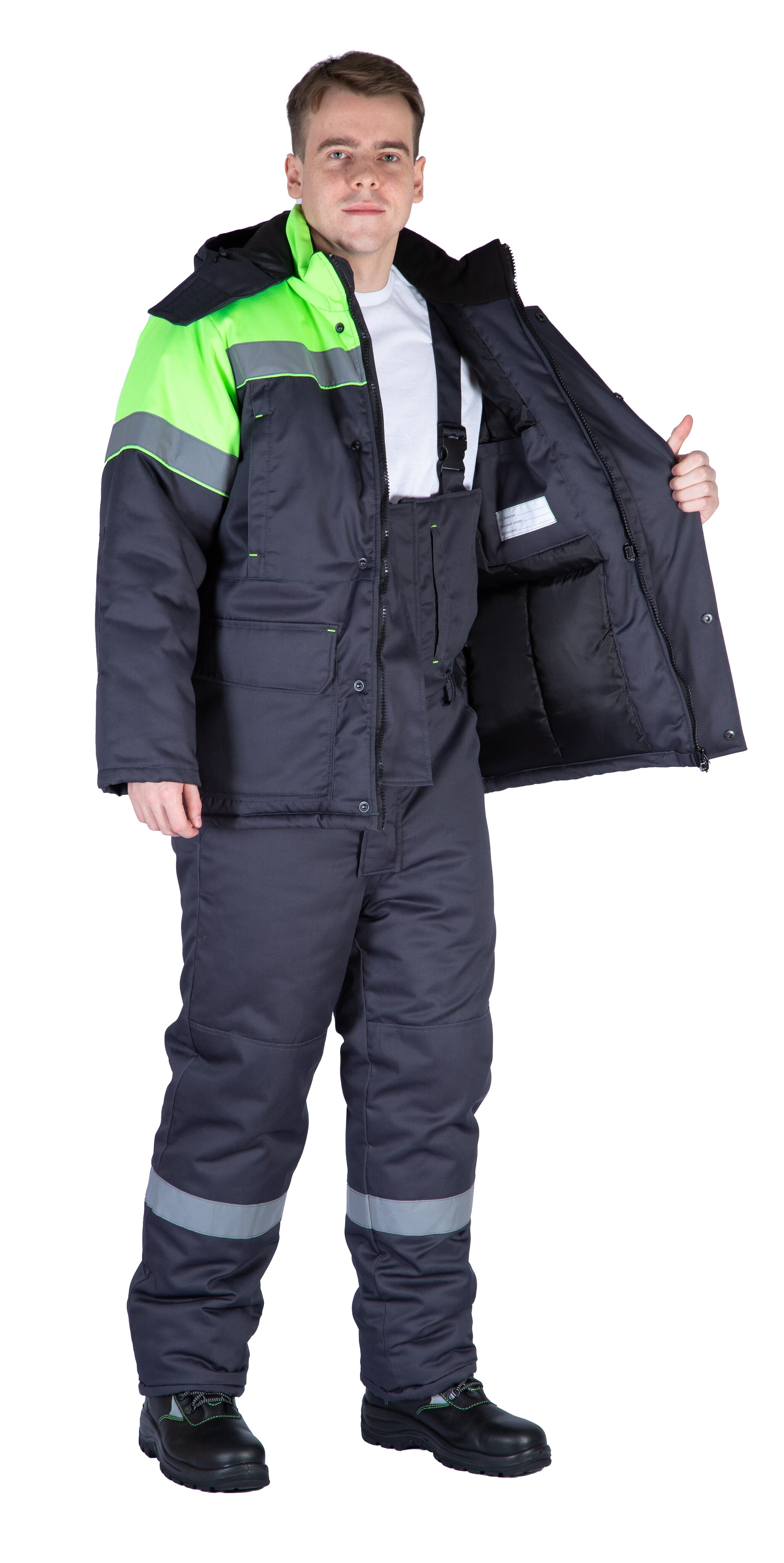 Костюм зимний "Байкит" с полукомбинезоном, т.серый/лимон
