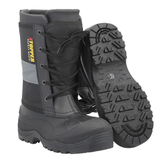 Верх обуви: Голенище сапога изготовлено из комбинации ткани «OXFORD», с полиуретановой пропиткой, сдублированной с неткаными полотнами. Ширина голенища регулируется шнуровкой на люверсах, шнур в манжете голенища фиксируется стопором. Наиболее ответственные участки голенища усилены натуральной кожей. Введены светоотражающие элементы.Вкладной чулок: Многослойный вкладной чулок позволяет чувствовать себя комфортно при длительном нахождении на морозе. Внутренняя сторона из трикотажного флисового полотна обладает хорошими дышащими свойствами.