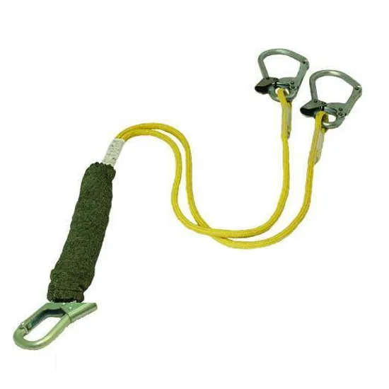Раскрытие карабинов позволяет рабочему подсоединяться к трубе диаметром до 50 мм или к металлическому профилю до 40х40 мм. Амортизатор произведен из специальной ленты, способной поглощать нагрузку при падении с высоты(плавно снижает рабочего, без сильного и резкого рывка). На амортизаторе имеется бирка для определения минимальной высоты под пользователем, а чехол выполнен из огнестойкого материала. Для удобства визуального контроля состояния амортизатора стропа аВнд+Кс (исп.3) чехол можно снять.